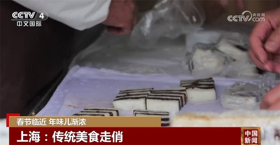 在上海,許多古鎮(zhèn)張燈結(jié)彩迎接春節(jié),老字號(hào)食品店也排起了長(zhǎng)龍。在一家糕團(tuán)店前,購(gòu)買傳統(tǒng)糕點(diǎn)的顧客絡(luò)繹不絕,崇明糕、定勝糕、紅糖糕等各具特色的傳統(tǒng)糕點(diǎn),不僅香甜美味,還能為新年討得一個(gè)好彩頭。