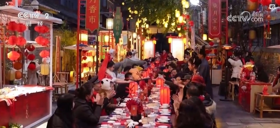 夜幕降臨,在四川成都的寬窄巷子里舉辦了一場(chǎng)特別的家宴?;鹄睗L燙的鴛鴦鍋熱氣騰騰,象征著生活紅紅火火,來(lái)自各行各業(yè)的近百位城市建設(shè)者在民俗表演中品美食、迎新春。