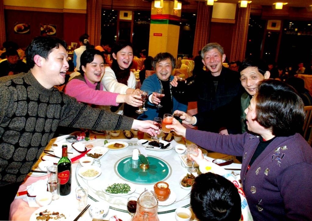 2003年1月31日,一家人在上海一家飯店吃年夜飯。