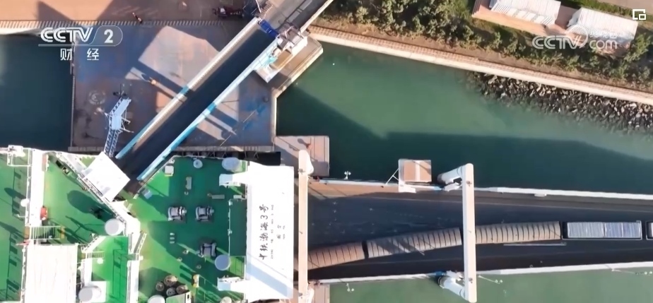 中鐵渤海3號(hào)渡船全長(zhǎng)182.6米、寬24.8米,滿載排水量可達(dá)16229噸,單航次可載運(yùn)一列50節(jié)貨物列車和50輛載重汽車、25輛小汽車以及716名旅客。
