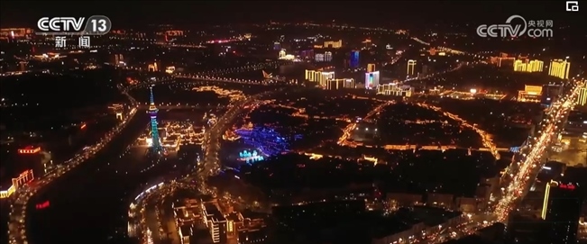 夜幕降臨,新春光影秀點(diǎn)亮城市夜景,多個(gè)城市地標(biāo)建筑流光溢彩,市民游客共同感受龍年的歡騰圖景。