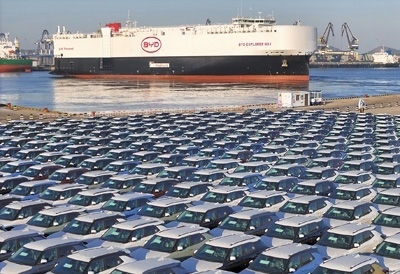 中國首艘由國內(nèi)船企建造、專門用于國產(chǎn)新能源汽車出口的汽車運輸船“比亞迪開拓者1號”搭載新能源汽車從山東煙臺港啟航。2023年,中國新能源汽車產(chǎn)銷量均突破900萬輛,其中出口120.3萬輛,同比增長77.6%,成為經(jīng)濟(jì)高質(zhì)量發(fā)展中的一抹亮色。唐 克攝(影像中國)