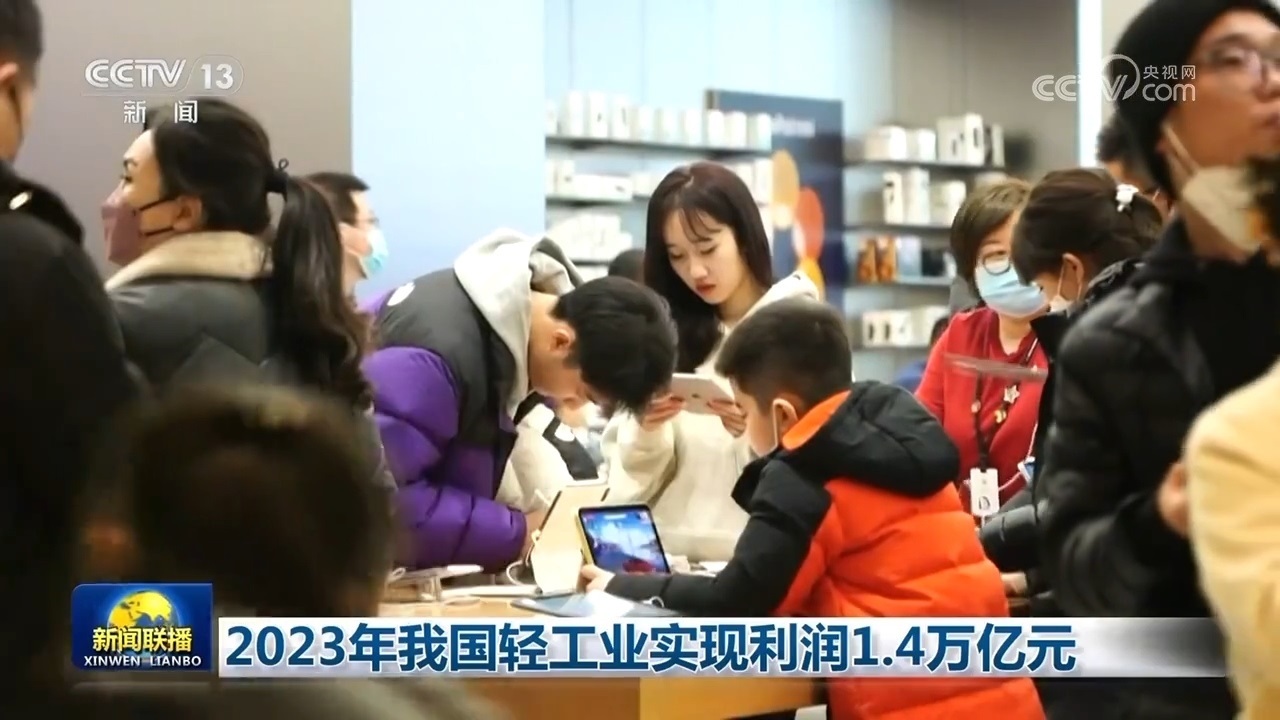 央視網(wǎng)消息(新聞聯(lián)播):中國輕工業(yè)聯(lián)合會發(fā)布數(shù)據(jù)顯示,2023年我國輕工業(yè)生產(chǎn)持續(xù)回升,市場穩(wěn)步復蘇,新動能行業(yè)較快增長,實現(xiàn)營業(yè)收入22.2萬億元,實現(xiàn)利潤1.4萬億元,同比增長3.8%。