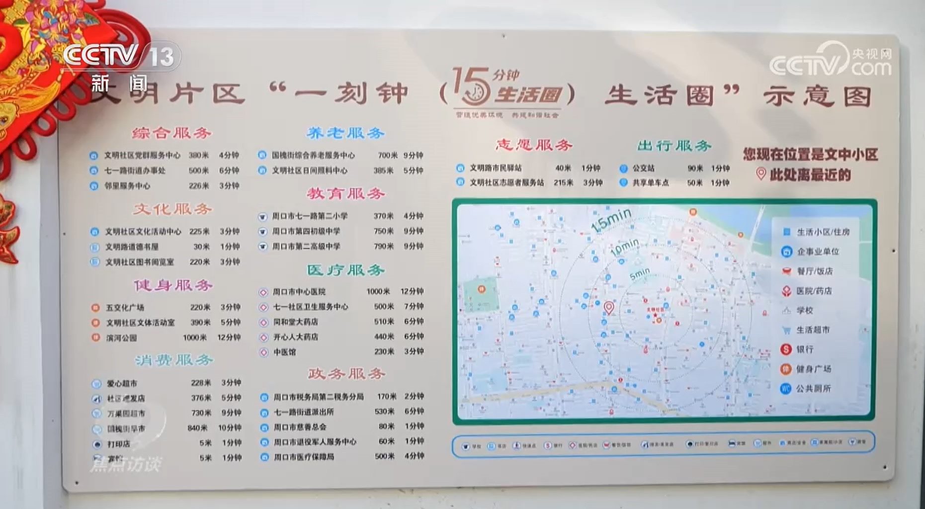 央視網(wǎng)消息(焦點訪談):走出家門,在步行一刻鐘的范圍內可以做些什么?河南周口市川匯區(qū)文明片區(qū)的15分鐘生活圈地圖上可以看到百姓基本生活所需幾乎全部覆蓋。河南省周口市是農業(yè)大市、人口大市,長期以來,這里城市化水平比較低,城市基礎設施和公共服務設施建設歷史欠賬多。川匯區(qū)作為城市的老舊小區(qū),遺留問題尤其多。2023年,川匯區(qū)在改造老舊小區(qū)的同時,著力打造15分鐘便民生活圈。經過一系列的措施,現(xiàn)在居民的生活怎樣了呢?