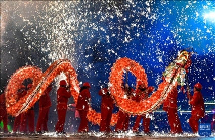 百龍競(jìng)技,苗族“舞龍噓花”鬧元宵。