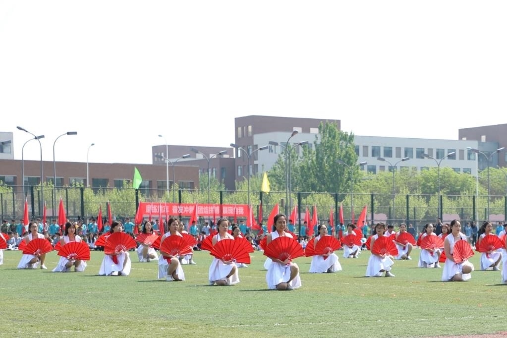 2019年4月26日,承德應用技術(shù)職業(yè)學院學生在天津中德應用技術(shù)大學運動會開幕式上表演。新華社發(fā)