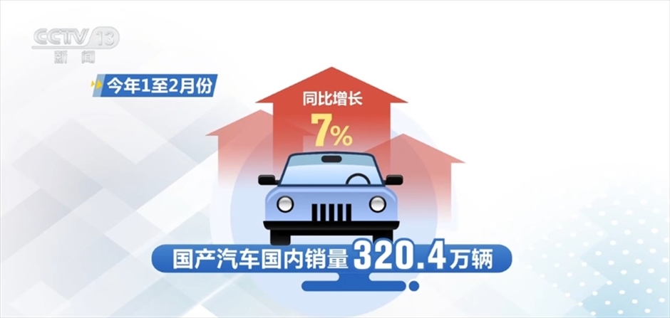 數(shù)據(jù)顯示,今年1至2月份,國產(chǎn)汽車國內(nèi)銷量320.4萬輛,同比增長7%。其中,國產(chǎn)新能源汽車國內(nèi)銷量102.5萬輛,同比增長34.3%。專家指出,從1至2月份運(yùn)行情況看,汽車產(chǎn)銷的總體保持平穩(wěn),同比增速呈現(xiàn)較快的增長,預(yù)計(jì)全年增速將呈現(xiàn)前高后低的發(fā)展勢態(tài)。
