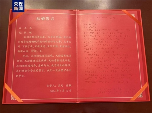 ·我國(guó)視障人士首次使用無(wú)障礙格式文件完成結(jié)婚登記。