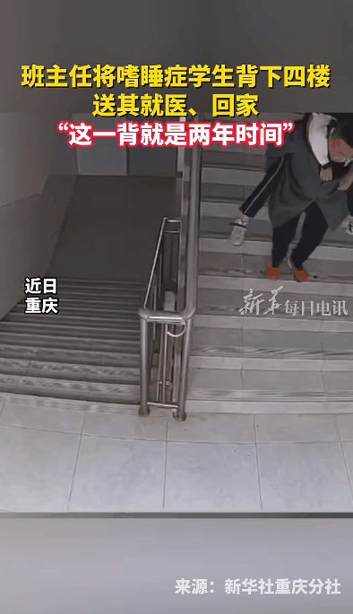 重慶墊江中學(xué)初二班里有位留守同學(xué)患有“嗜睡癥”,常常一睡不醒。老師們?cè)囘^(guò)捏鼻子、用冷水巾擦臉、輕拍臉頰,多種方式都不奏效,最嚴(yán)重時(shí)一周會(huì)發(fā)作兩三次。每次他一睡不醒時(shí),班主任徐龍軍都會(huì)把他從四樓寢室背下來(lái),送他回家或就醫(yī),這一背就是兩年。