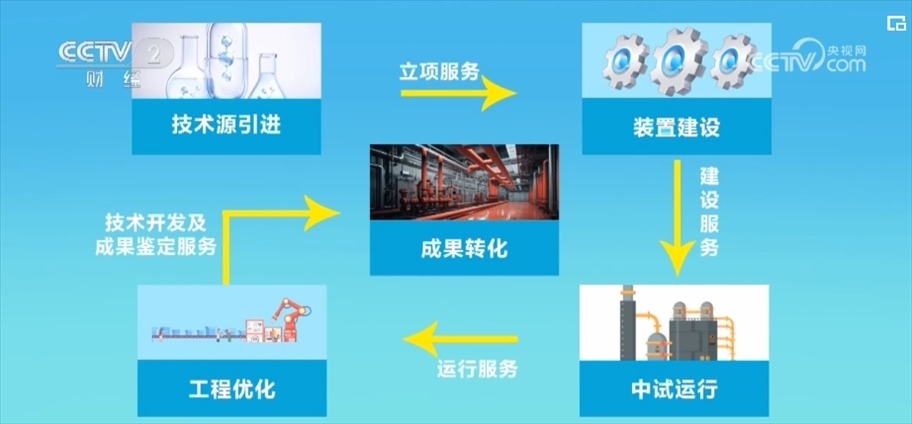 從技術(shù)源引進、裝置建設(shè)、中試運行、工程優(yōu)化到成果轉(zhuǎn)化等5個關(guān)鍵節(jié)點,為中試項目提供包含立項、建設(shè)、運行以及技術(shù)開發(fā)、成果鑒定等24項專業(yè)服務(wù)。