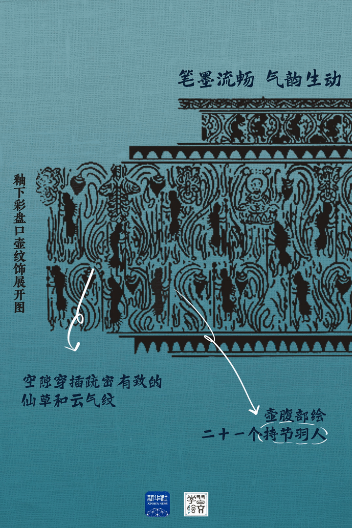 “這件藏于六朝博物館的青瓷釉下彩羽人紋盤口壺于1983年出土,精湛的釉下彩繪工藝,改變了人們對(duì)釉下彩工藝始于唐代的認(rèn)識(shí),把我國釉下彩繪工藝出現(xiàn)的時(shí)間提前了近五百年。”宋燕說。
