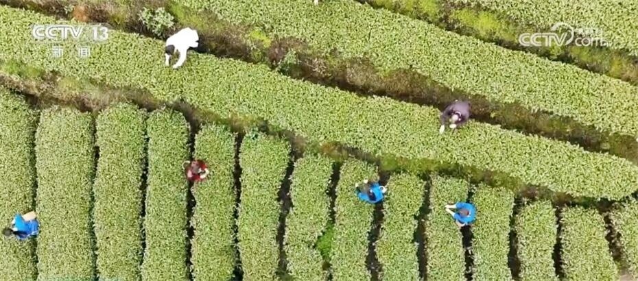 在廣西柳州市三江侗族自治縣,20多萬畝的早春茶進(jìn)入豐采期,一行行錯(cuò)落有致的茶樹長(zhǎng)勢(shì)喜人,茶農(nóng)們?cè)谌f畝茶山上搶抓時(shí)令,采摘早春茶。