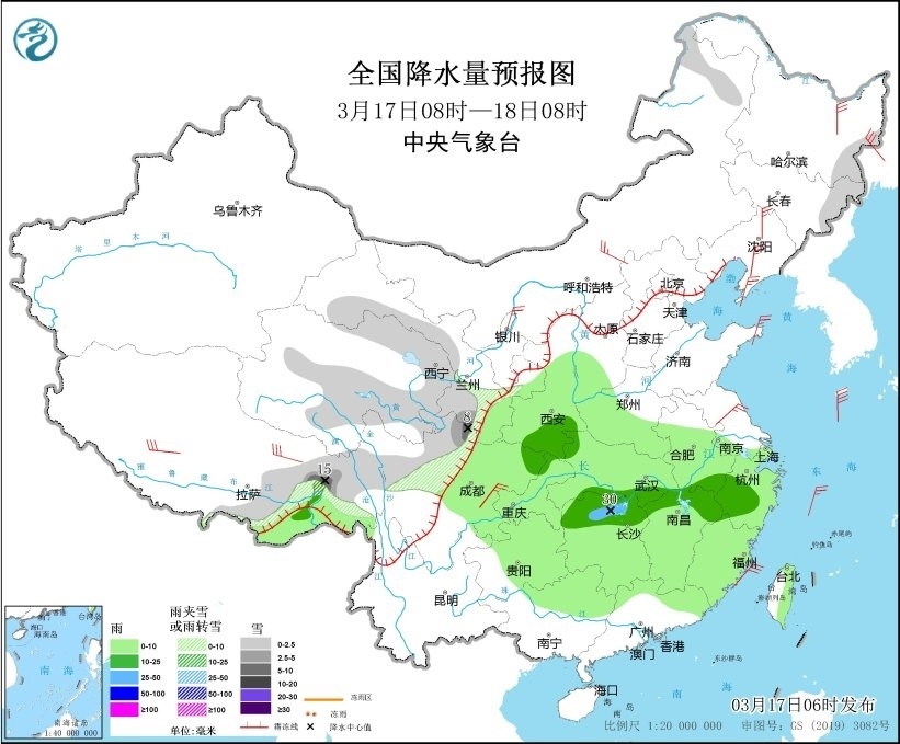 未來三天,冷空氣帶來的降溫還將繼續(xù)深入南下,17日至18日,西南地區(qū)東部、陜南、江漢、江淮、江南、華南等地有小到中雨,其中,湖南北部等地部分地區(qū)有大雨。