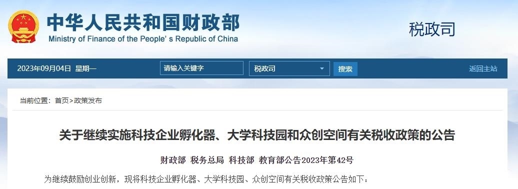 財(cái)政部等四部門發(fā)布“科技企業(yè)孵化器、大學(xué)科技園和眾創(chuàng)空間”稅收政策公告 對(duì)國(guó)家級(jí)、省級(jí)科技企業(yè)孵化器、大學(xué)科技園和國(guó)家備案......