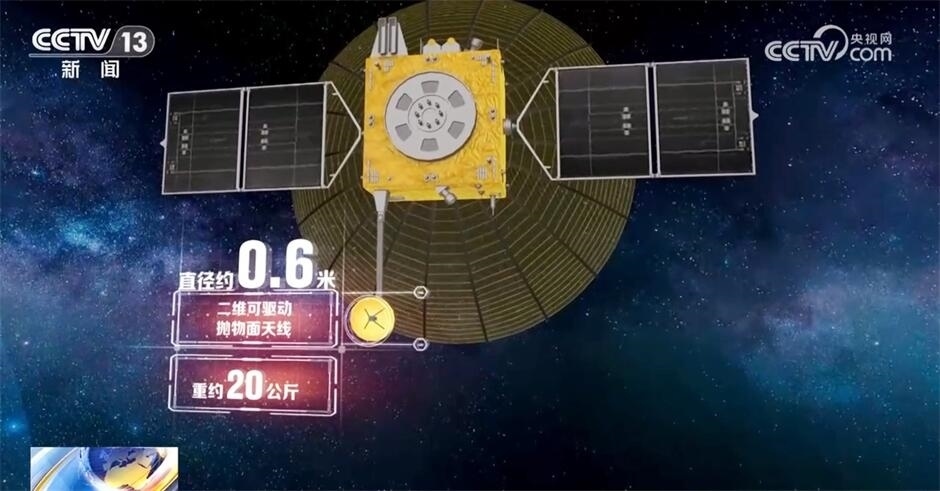 而在鵲橋二號(hào)中繼星上還有一個(gè)“小傘”,叫二維可驅(qū)動(dòng)拋物面天線。它的直徑和重量都很小,直徑大約只有0.6米、重約20公斤。在太空中,通過兩軸驅(qū)動(dòng)機(jī)構(gòu),保證每時(shí)每刻都能指向地面數(shù)據(jù)接收站。