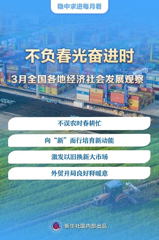 新華社北京3月29日電 題:不負春光奮進時——3月全國各地經(jīng)濟社會發(fā)展觀察
