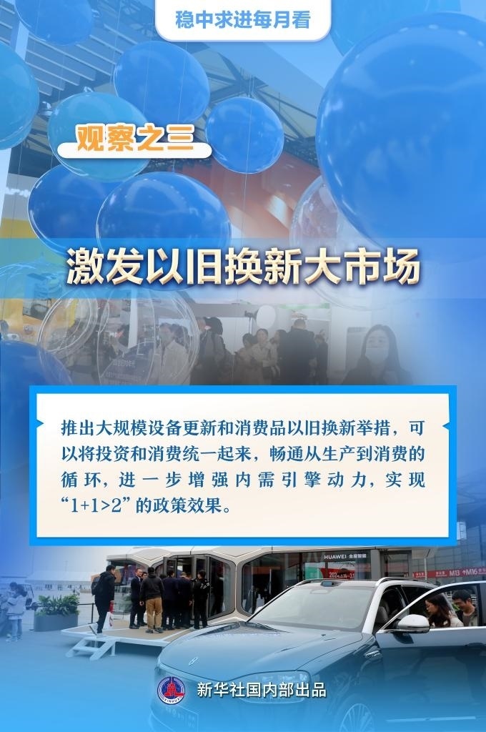 【記者觀察】推出大規(guī)模設(shè)備更新和消費品以舊換新舉措,可以將投資和消費統(tǒng)一起來,暢通從生產(chǎn)到消費的循環(huán),進一步增強內(nèi)需引擎動力,實現(xiàn)“1+1>2”的政策效果。