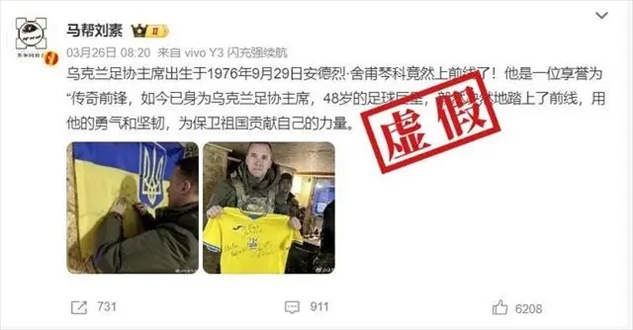 ·烏克蘭足壇傳奇舍甫琴科參戰(zhàn)系謠言。