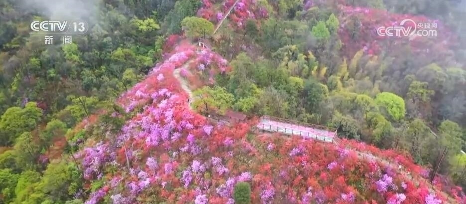 安徽岳西:嶺上開遍映山紅 嬌媚馨香繞群山