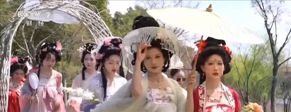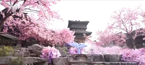 在江蘇常州,百萬(wàn)株郁金香競(jìng)相開(kāi)放。櫻花、玉蘭、垂絲海棠等花木也開(kāi)滿山谷,一簇簇粉白的花朵隨微風(fēng)搖曳,宛若世外桃源。伴著音樂(lè),十二花神身著漢服踏春而來(lái),構(gòu)成本次花朝節(jié)一道亮麗的風(fēng)景線。