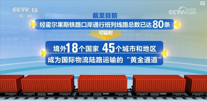 自2016年開(kāi)出首趟中歐班列以來(lái),經(jīng)霍爾果斯海關(guān)監(jiān)管的中歐(中亞)班列總量已超過(guò)3.5萬(wàn)列。截至目前,經(jīng)霍爾果斯鐵路口岸通行班列線路總數(shù)已達(dá)80條,可輻射境外18個(gè)國(guó)家、45個(gè)城市和地區(qū),成為國(guó)際物流陸路運(yùn)輸?shù)摹包S金通道”。