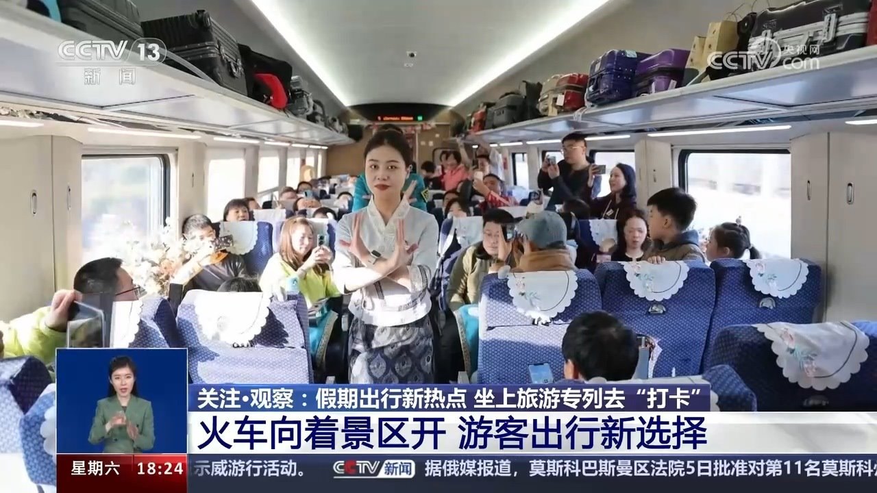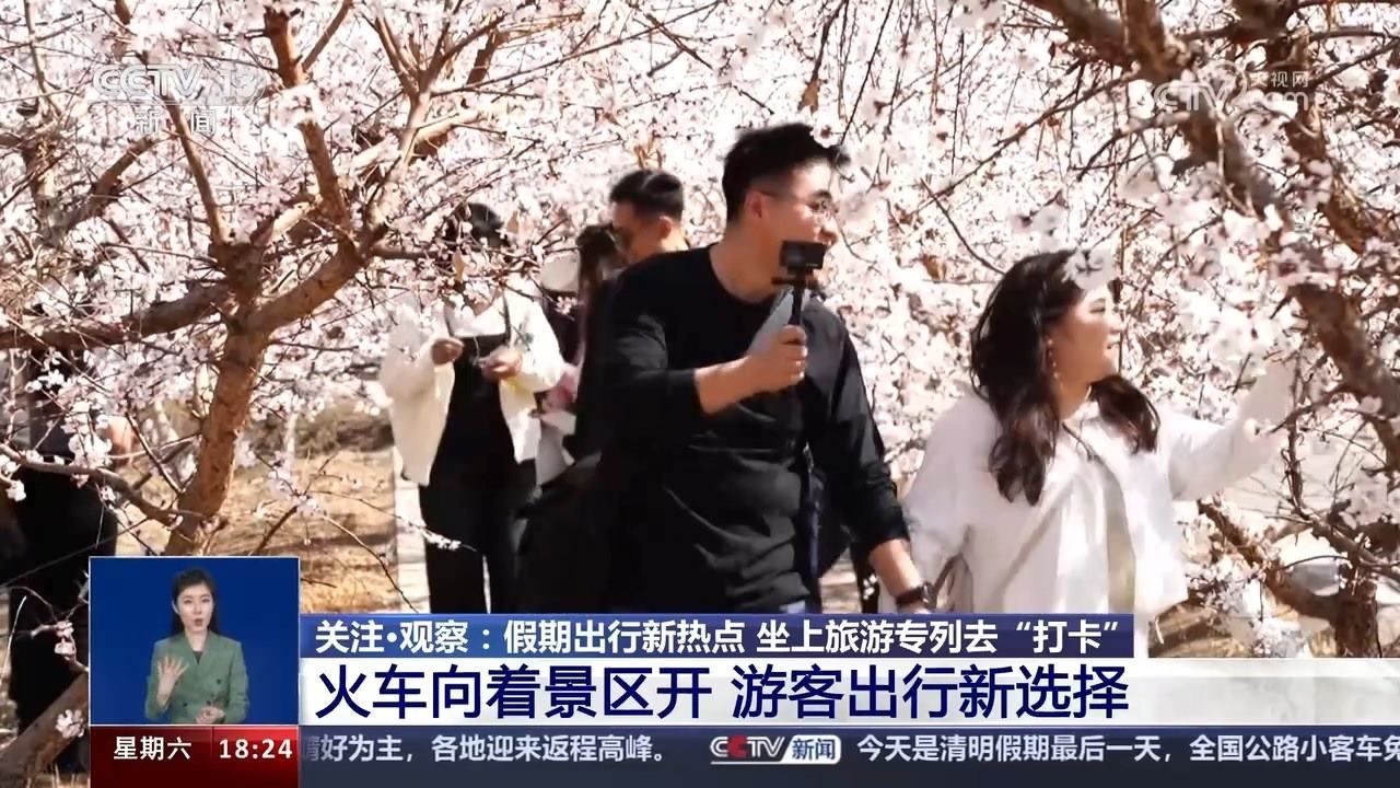 央視網(wǎng)消息:清明春花放,踏青好時(shí)節(jié)。坐著火車去旅行,縱跨千山,橫飛萬(wàn)水,用速度與激情串聯(lián)美景。今年清明假期第一天也就是4月4日,全國(guó)鐵路發(fā)送旅客1853.6萬(wàn)人次,創(chuàng)今年以來(lái)單日旅客發(fā)送量新高。以網(wǎng)紅城市、網(wǎng)紅景區(qū)為目的地的客流增幅明顯,各地增開的臨客列車也瞄準(zhǔn)了游客“打卡地”。坐上旅游專列去旅行,可以給移步換景的美好出游心愿帶來(lái)多少種可能呢?進(jìn)入今天的關(guān)注觀察。