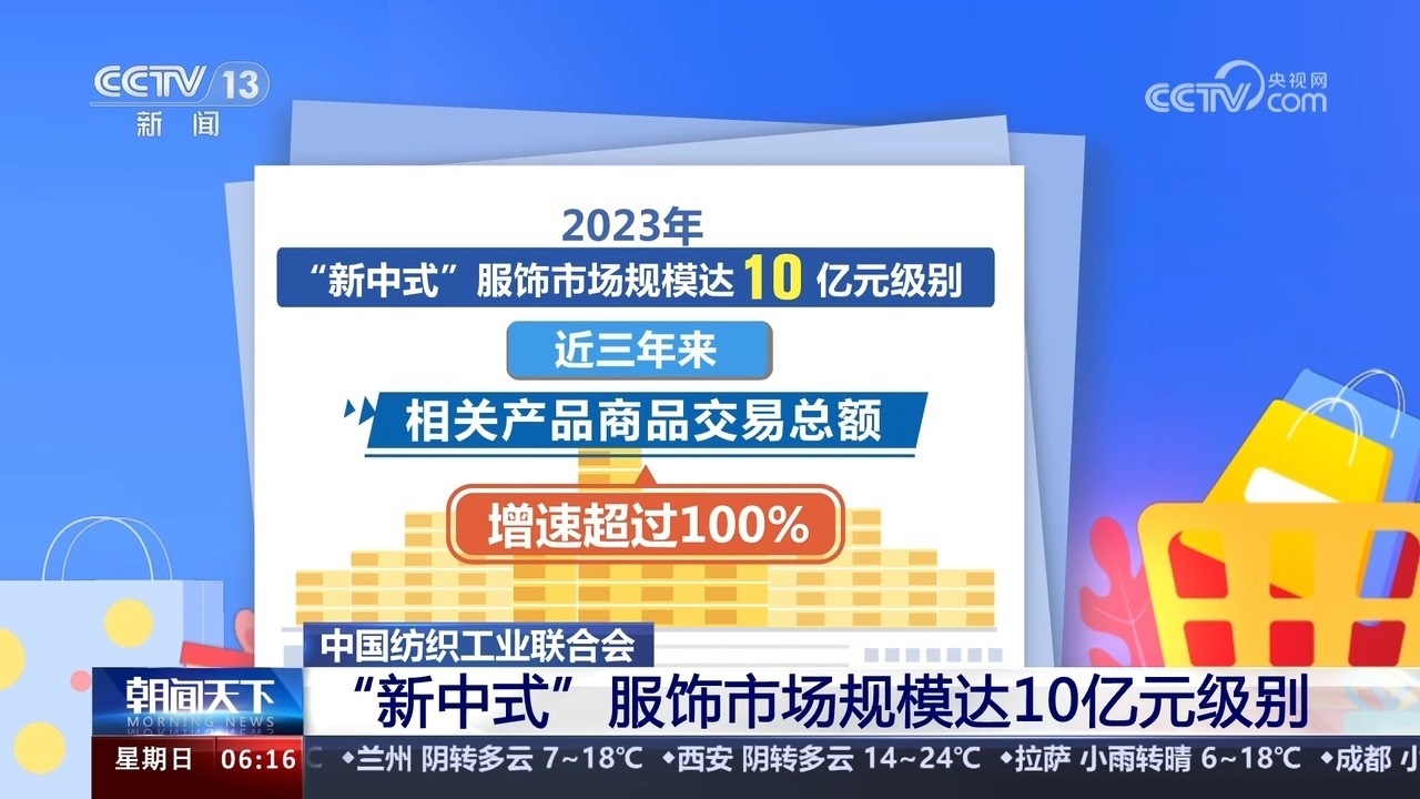 中國紡織工業(yè)聯(lián)合會數(shù)據(jù)顯示,2023年“新中式”服飾市場規(guī)模達10億元級別,近三年來,相關產(chǎn)品商品交易總額增速超過100%。今年1月以來,在互聯(lián)網(wǎng)銷售平臺上“新中式”“宋錦”的搜索量環(huán)比分別增長近6倍和近20倍。