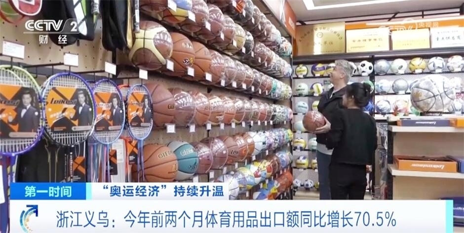 央視網(wǎng)消息:隨著巴黎奧運(yùn)會(huì)的臨近,“奧運(yùn)經(jīng)濟(jì)”也持續(xù)升溫,在浙江義烏國(guó)際商貿(mào)城,各種體育用品吸引了不少客商下單。我們來看記者的報(bào)道。