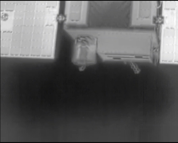 2024年4月3日,天都二號拍攝雙星組合體成功實施雙星分離視頻截圖。(深空探測實驗室供圖)