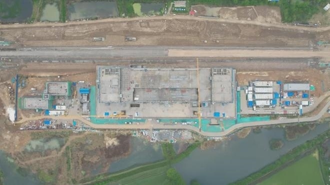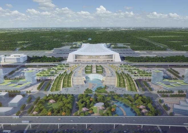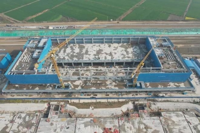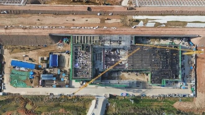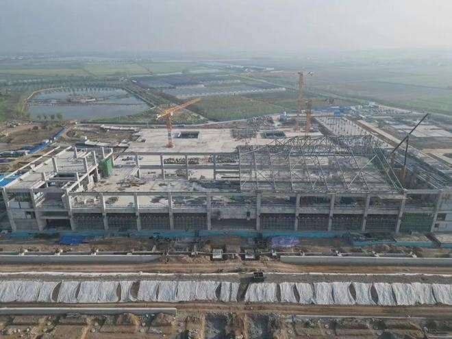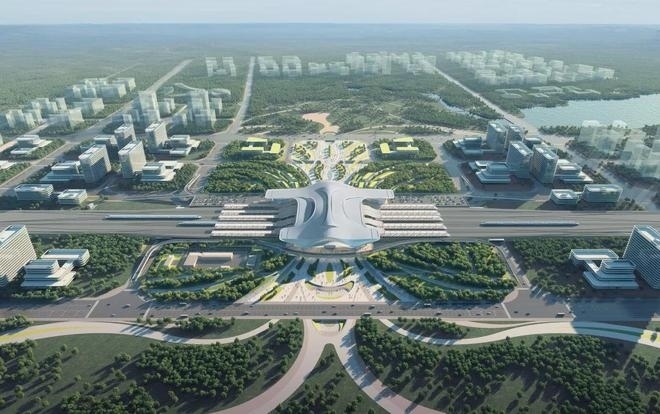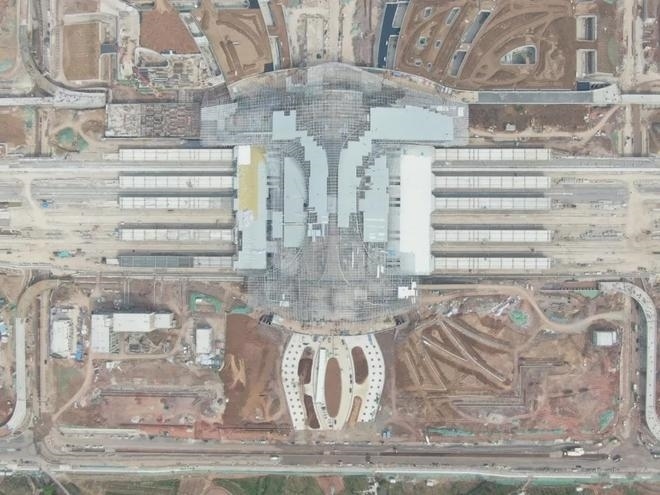 車(chē)站采用鋼結(jié)構(gòu)加鋁鎂錳板金屬屋面,整體空間造型提煉和吸取了明代傳統(tǒng)建筑造型特點(diǎn),結(jié)合傳統(tǒng)與現(xiàn)代的設(shè)計(jì)手法,打造具有“風(fēng)水寶地,祥瑞所鐘”設(shè)計(jì)理念的地域性地標(biāo)建筑。目前,站房主體結(jié)構(gòu)已施工完畢,正在進(jìn)行屋面鋼桁架施工。