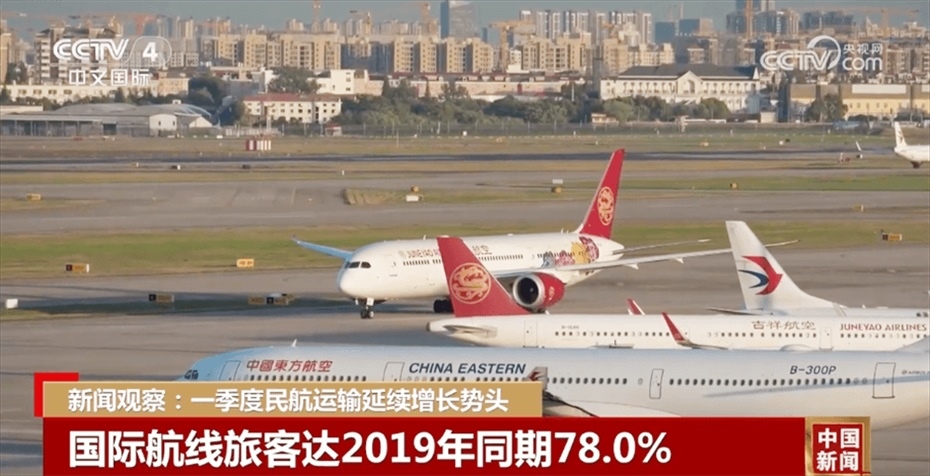 央視網(wǎng)消息:據(jù)中國(guó)民航局消息,2024年一季度,民航運(yùn)輸生產(chǎn)開(kāi)局良好,旅客運(yùn)輸量和貨郵運(yùn)輸量均創(chuàng)下歷年一季度最高值。全行業(yè)共完成運(yùn)輸總周轉(zhuǎn)量同比增長(zhǎng)45.6%,較2019年同期增長(zhǎng)12.9%。