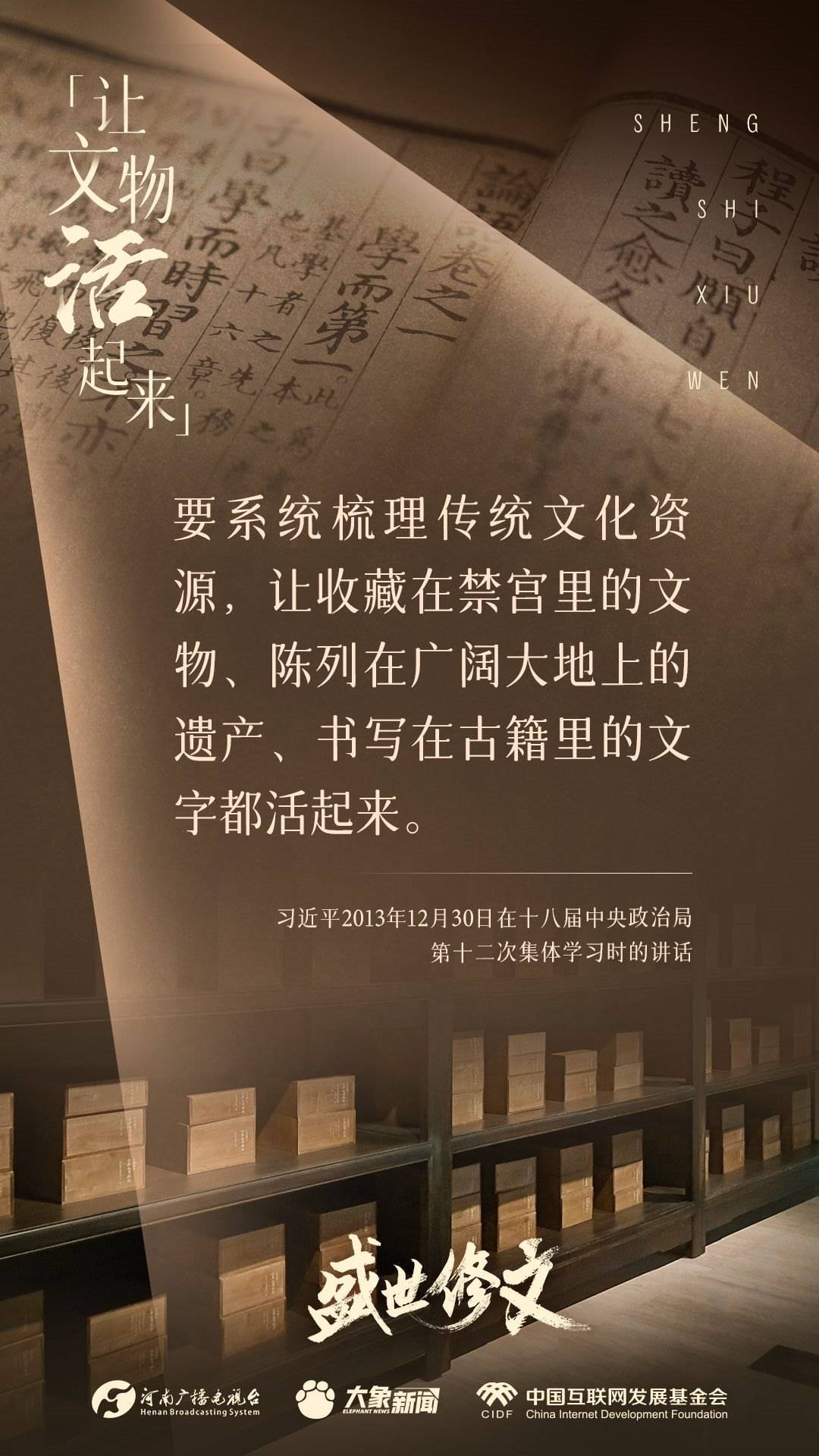今天推出:習(xí)近平文化思想金句之《盛世修文|讓文物活起來(lái)》