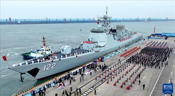 全國多地以多種形式慶祝人民海軍成立75周年,海軍組織“戰(zhàn)艦回家鄉(xiāng)”活動,唐山艦靠泊河北省唐山市。