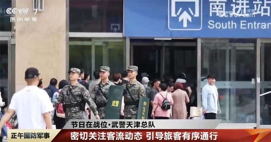 近期,天津站日均客流量達(dá)10萬人次,武警天津總隊(duì)某支隊(duì)執(zhí)勤官兵在車站廣場、進(jìn)站口、候車大廳等人流密集區(qū)域設(shè)置巡邏警戒小組,嚴(yán)密監(jiān)視客流動(dòng)態(tài),引導(dǎo)旅客有序通行。