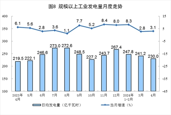 國家統(tǒng)計(jì)局:4月份規(guī)上工業(yè)發(fā)電量6901億千瓦時(shí) 同比增長3.1%