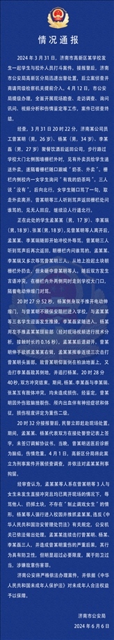 ·濟(jì)南警方通報(bào)學(xué)生與醉漢沖突被刑拘案:涉事學(xué)生屬于防衛(wèi)過當(dāng)。