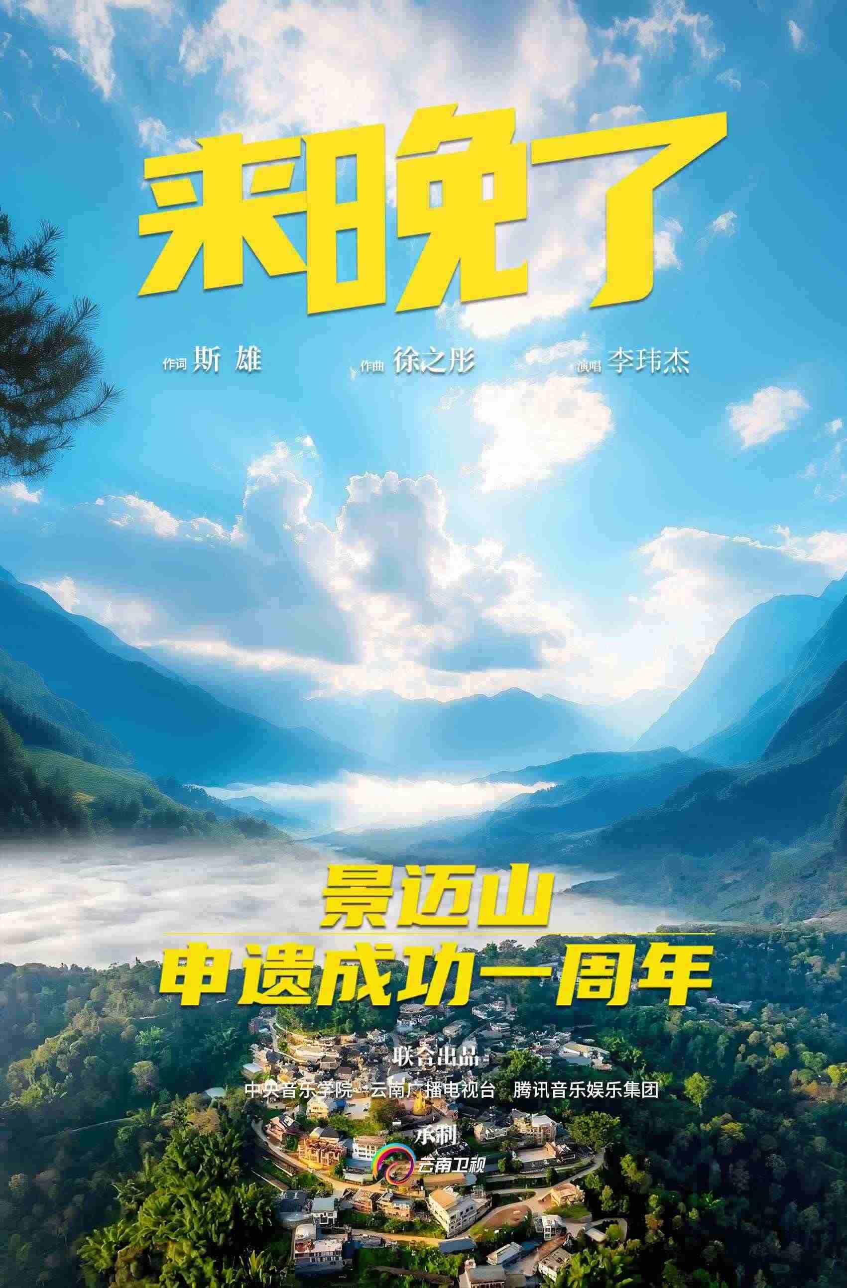 為慶祝景邁山申遺成功一周年,實景版MV《來晚了》上線啦!實景版歌曲由資深媒體人斯雄作詞,中央音樂學(xué)院徐之彤教授作曲,云南音樂人李瑋杰演唱。中央音樂學(xué)院、云南廣播電視臺、騰訊音樂娛樂集團聯(lián)合出品,云南衛(wèi)視承制。