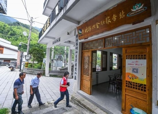在浙江省麗水市青田縣方山鄉(xiāng)的鄉(xiāng)村振興金融服務站內(nèi),青田農(nóng)商銀行服務隊志愿者上門服務,打通金融服務“最后一公里”。新華社記者徐昱 攝