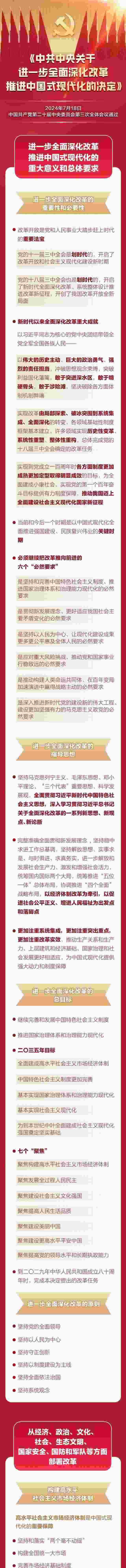 7月15日至18日,黨的二十屆三中全會(huì)在北京舉行。全會(huì)審議通過了《中共中央關(guān)于進(jìn)一步全面深化改革、推進(jìn)中國(guó)式現(xiàn)代化的決定》。