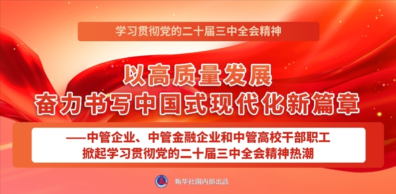 點(diǎn)擊標(biāo)題看詳情:以高質(zhì)量發(fā)展奮力書寫中國(guó)式現(xiàn)代化新篇章——中管企業(yè)、中管金融企業(yè)和中管高校干部職工掀起學(xué)習(xí)貫徹黨的二十屆三中全會(huì)精神熱潮