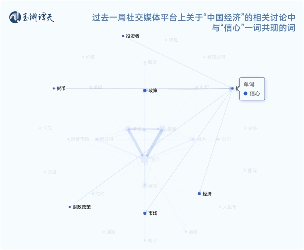 其中,跟“信心”一詞共現(xiàn)最多的一組詞是“政策、貨幣、投資者、市場(chǎng)、財(cái)政政策”。