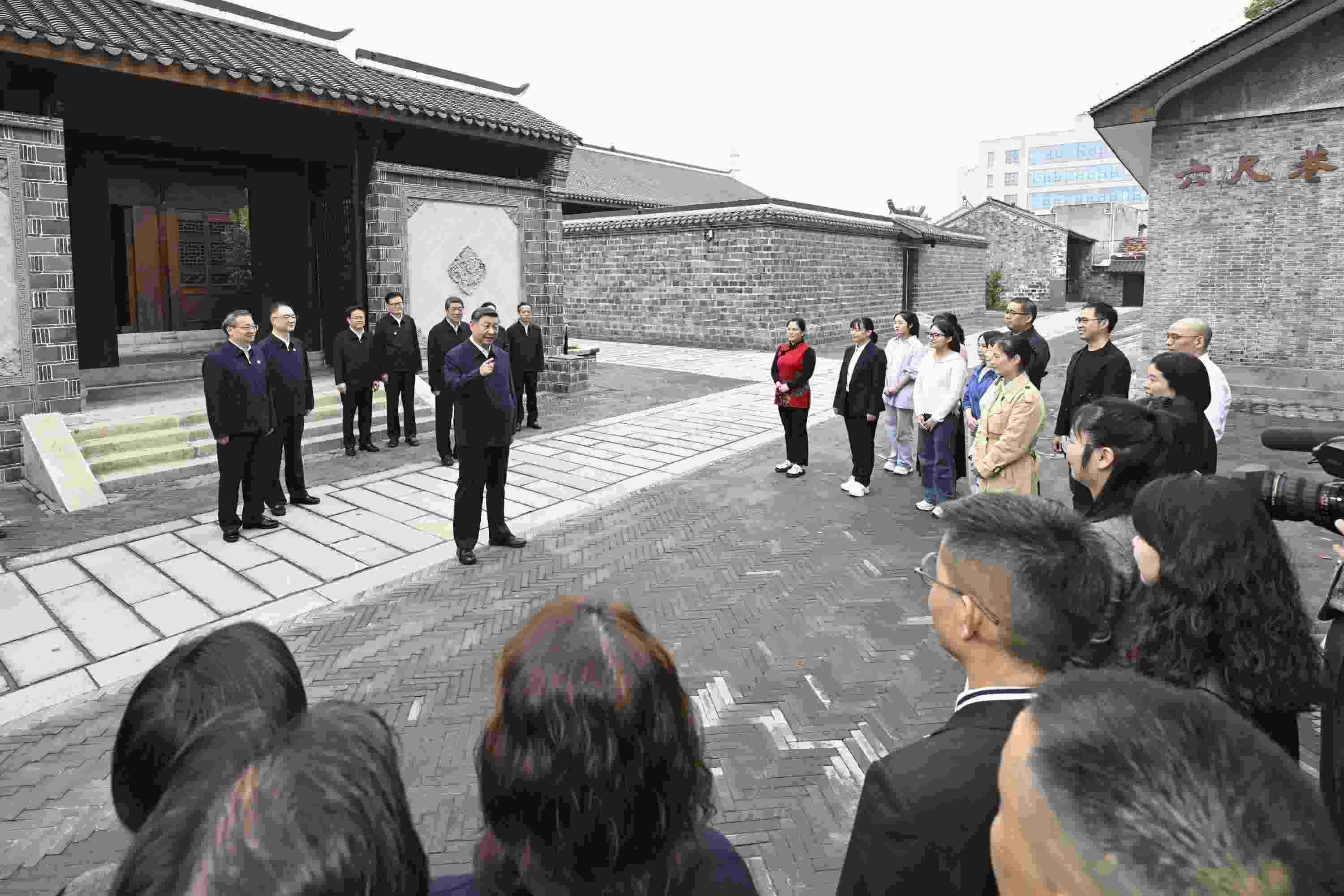 △2024年10月17日,習(xí)近平總書記在安徽省安慶桐城市六尺巷考察時,同當?shù)鼐用窈陀慰陀H切交流。