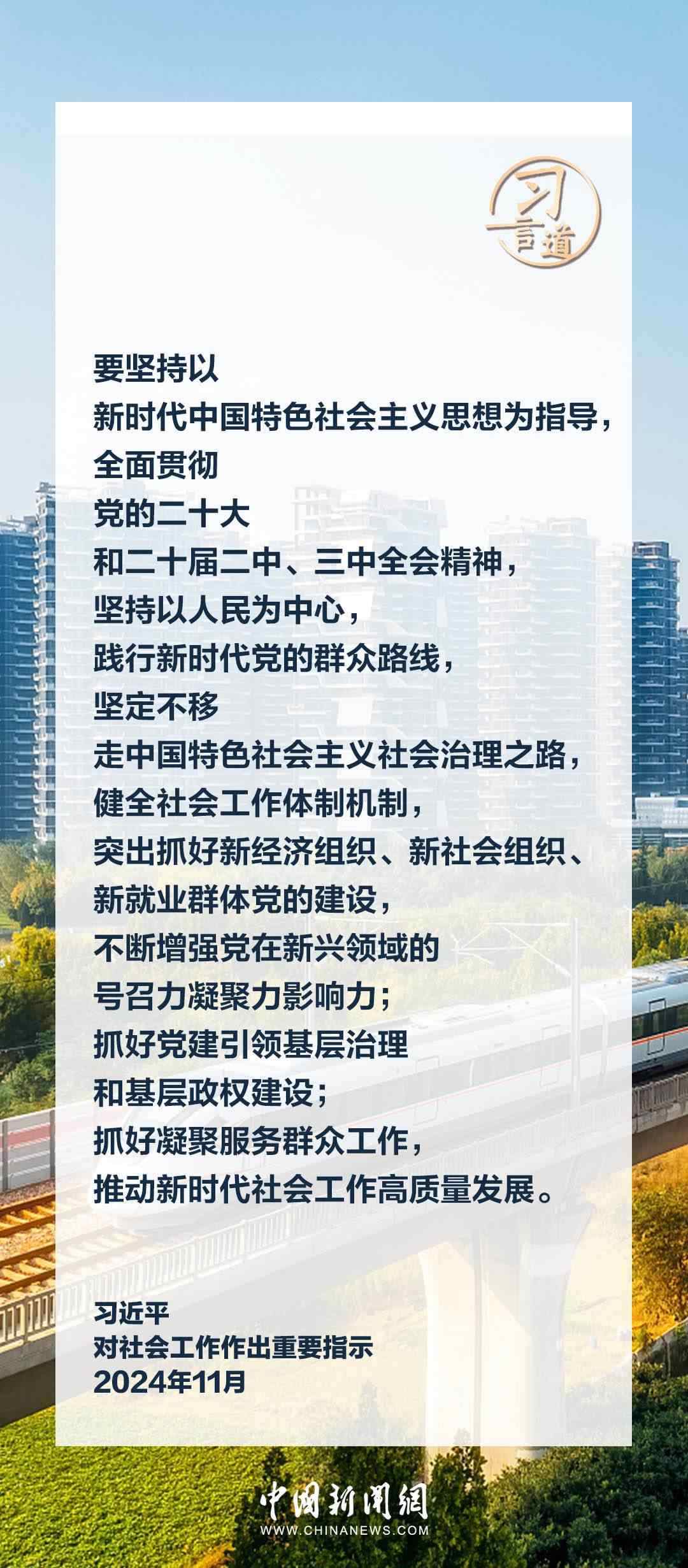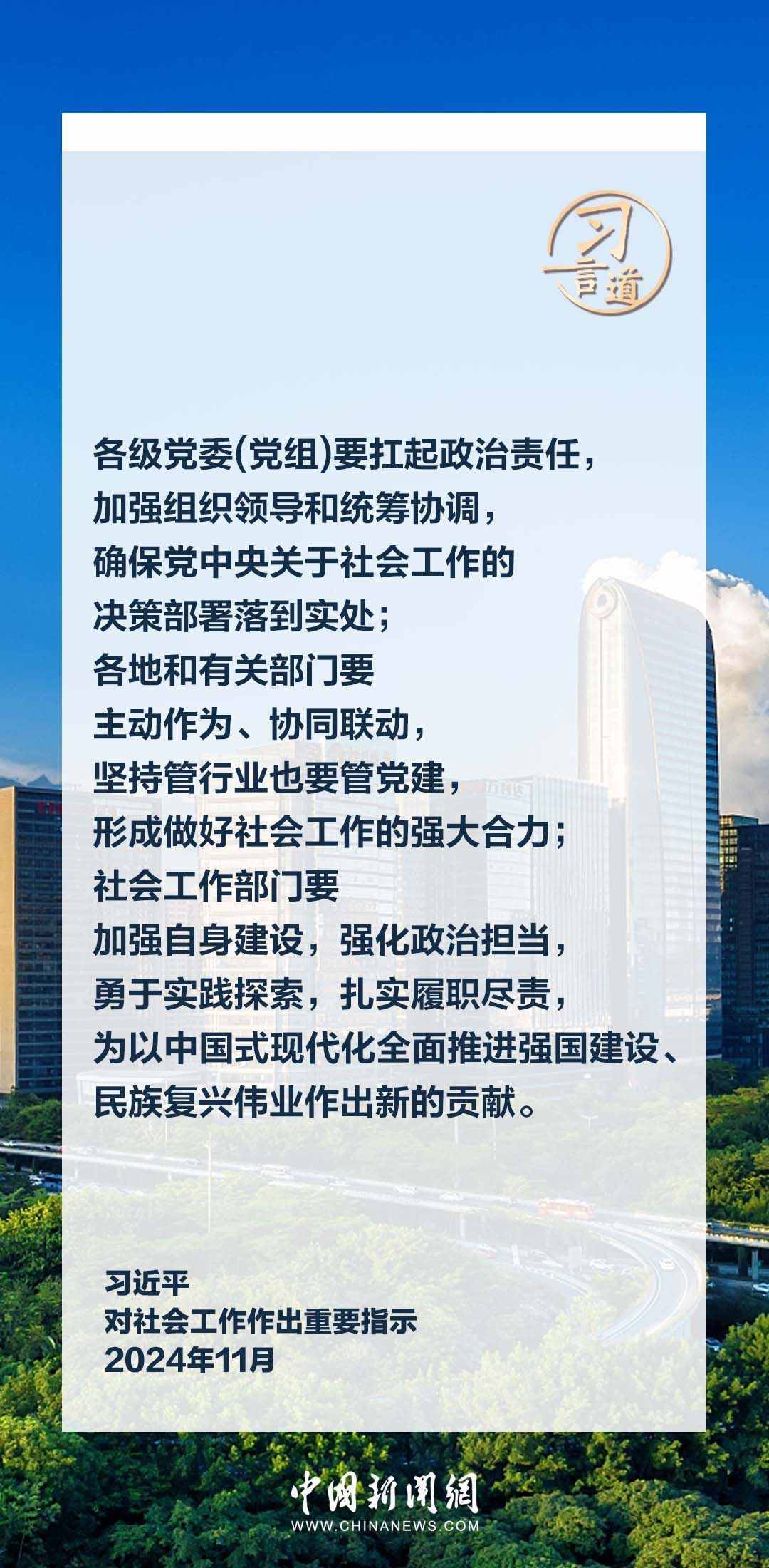 中共中央總書記、國家主席、中央軍委主席習近平近日對社會工作作出重要指示指出——