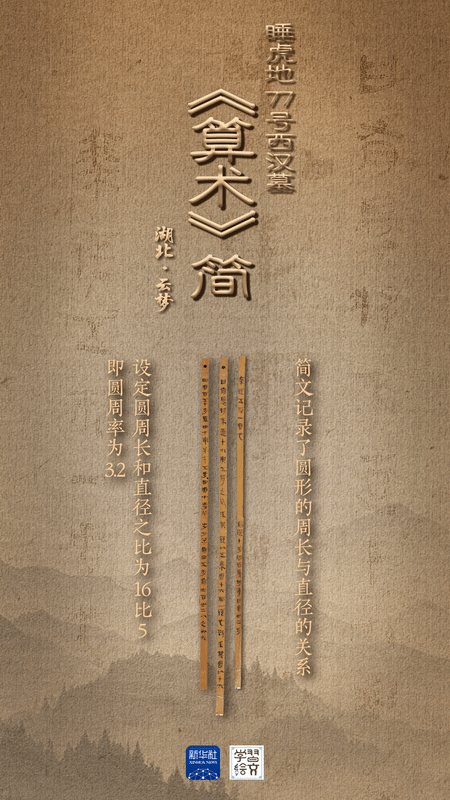 簡(jiǎn)牘里的《算術(shù)》,是古人科學(xué)智慧的精彩呈現(xiàn)。三枚關(guān)于計(jì)算圓形田地面積方法的西漢簡(jiǎn)牘保存完好,為首次公開(kāi)展出?!坝斜瀸?lái)直十六與五侍之”,睡虎地漢簡(jiǎn)中列舉的這道算術(shù)題顯示,周長(zhǎng)和直徑之比為16:5,即圓周率為3.2,證明秦漢之際已有人認(rèn)識(shí)到比3更精確的圓周率,為出土簡(jiǎn)牘所僅見(jiàn),尤其珍貴。