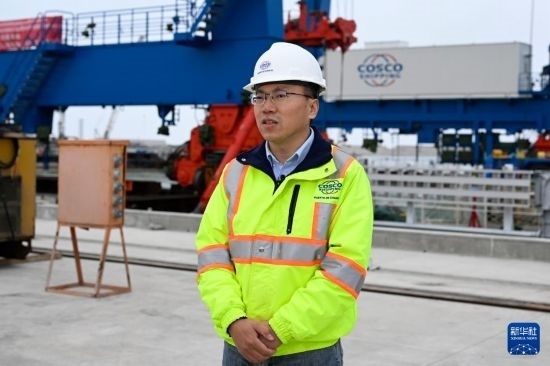 6月21日,在秘魯錢凱港,中遠海運港口秘魯錢凱公司常務副總經(jīng)理何波接受新華社記者采訪。 新華社記者 李木子 攝