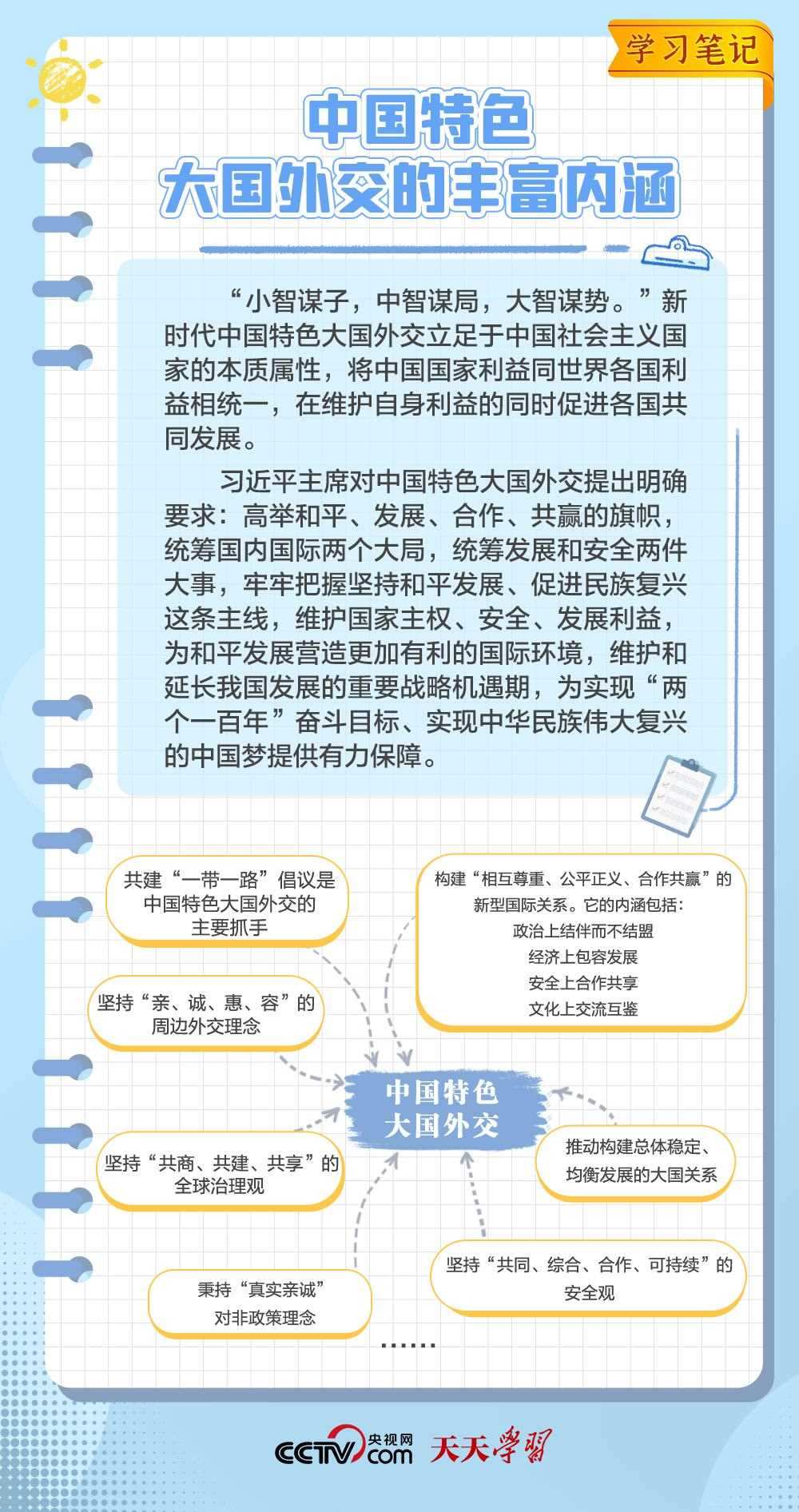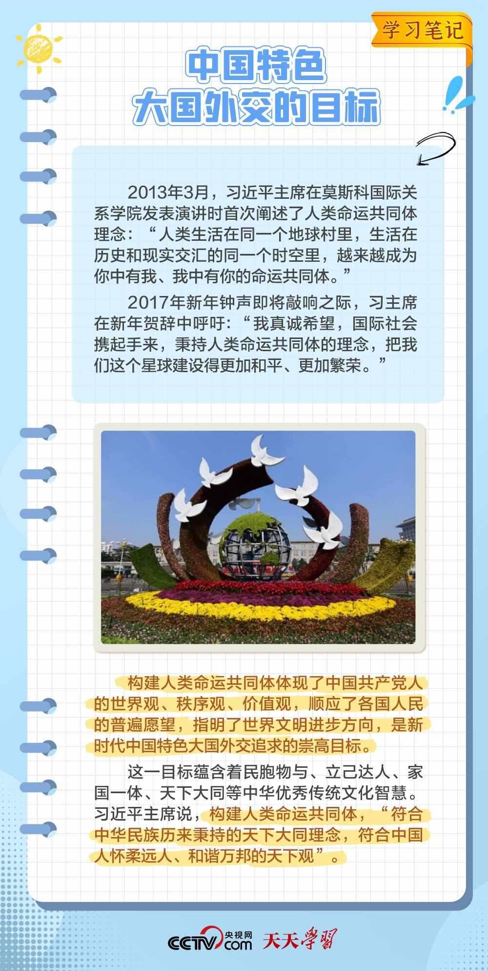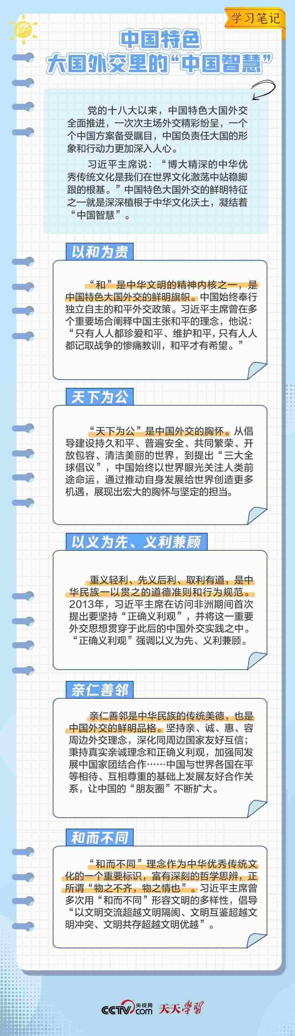 10年來,面對(duì)風(fēng)云變幻的國際形勢,中國特色大國外交扎實(shí)推進(jìn),形成了全方位、多層次、立體化的外交布局,為我國高質(zhì)量發(fā)展?fàn)I造了良好外部環(huán)境。中國特色大國外交提出10周年之際,《學(xué)習(xí)筆記》特梳理其內(nèi)涵要義,與您一同感悟其中蘊(yùn)含的“中國智慧”。