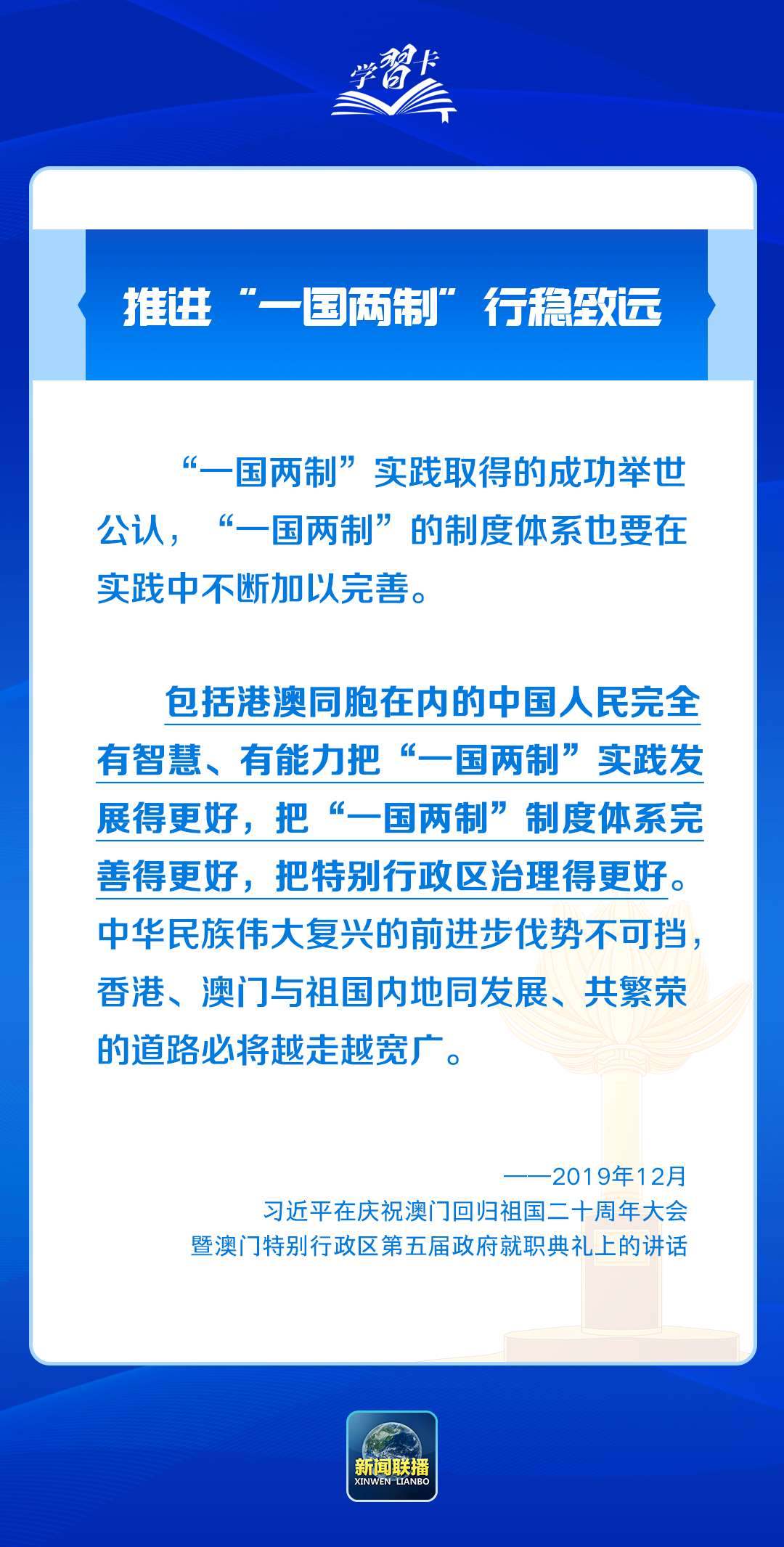 習(xí)近平主席一直心系澳門,為澳門全面準(zhǔn)確、堅(jiān)定不移貫徹“一國兩制”、保持長期繁榮穩(wěn)定指明前進(jìn)方向。
