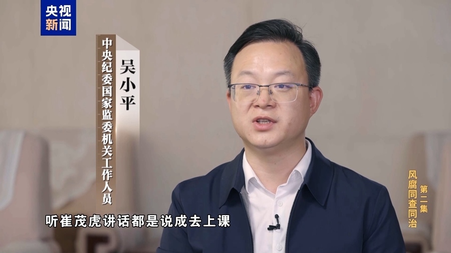 中央紀(jì)委國家監(jiān)委機(jī)關(guān)工作人員 吳小平:由風(fēng)及腐,風(fēng)腐一體,它是一個規(guī)律,崔茂虎案件就是這樣一個典型。不法商人先是通過和崔茂虎在一起陪吃陪喝陪玩,來拉扯關(guān)系建立感情,最后才發(fā)展成為權(quán)錢交易,利益共同體。