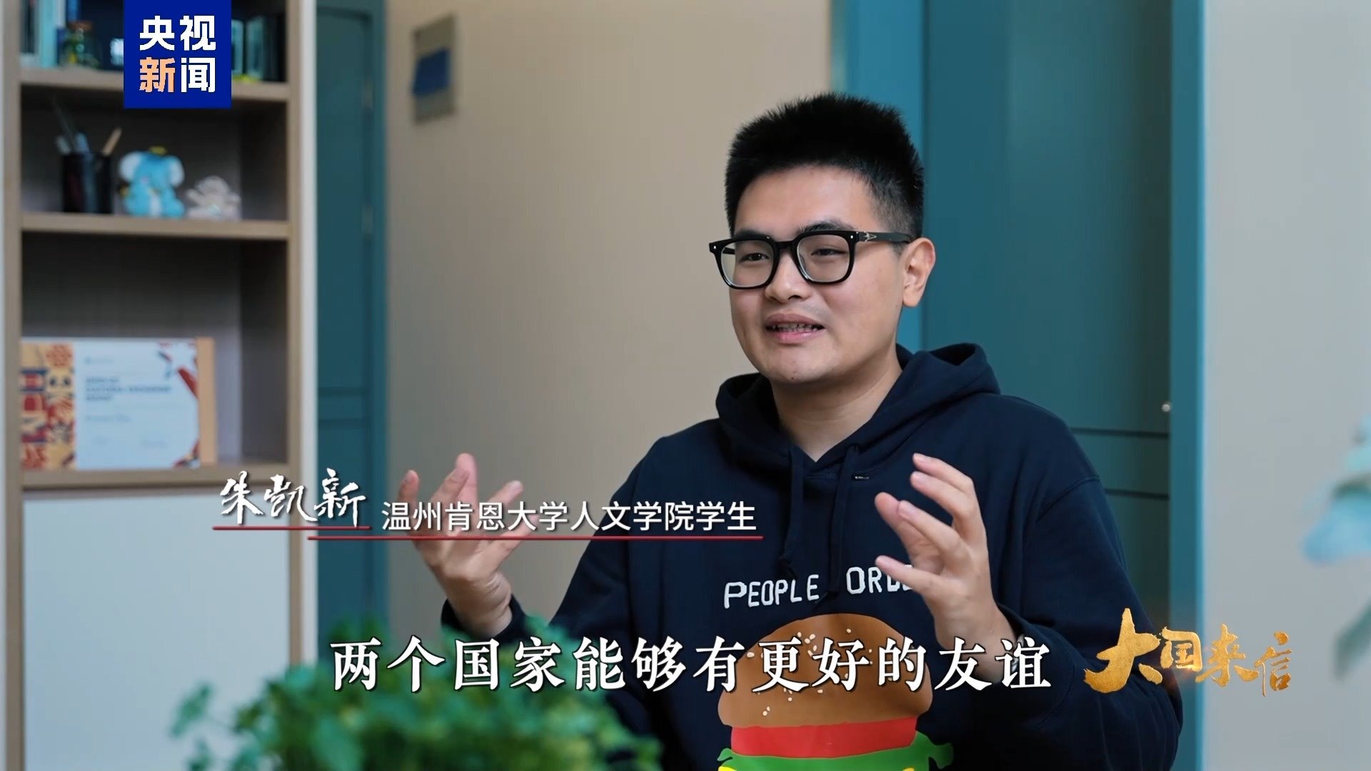 溫州肯恩大學人文學院學生 朱凱新:我也是非常非常期待每一位美國朋友來到我們中國,來到我們真正的這塊土地上去看看我們到底是什么樣子的。我希望能夠讓中國和美國兩個國家能夠有更好的友誼。