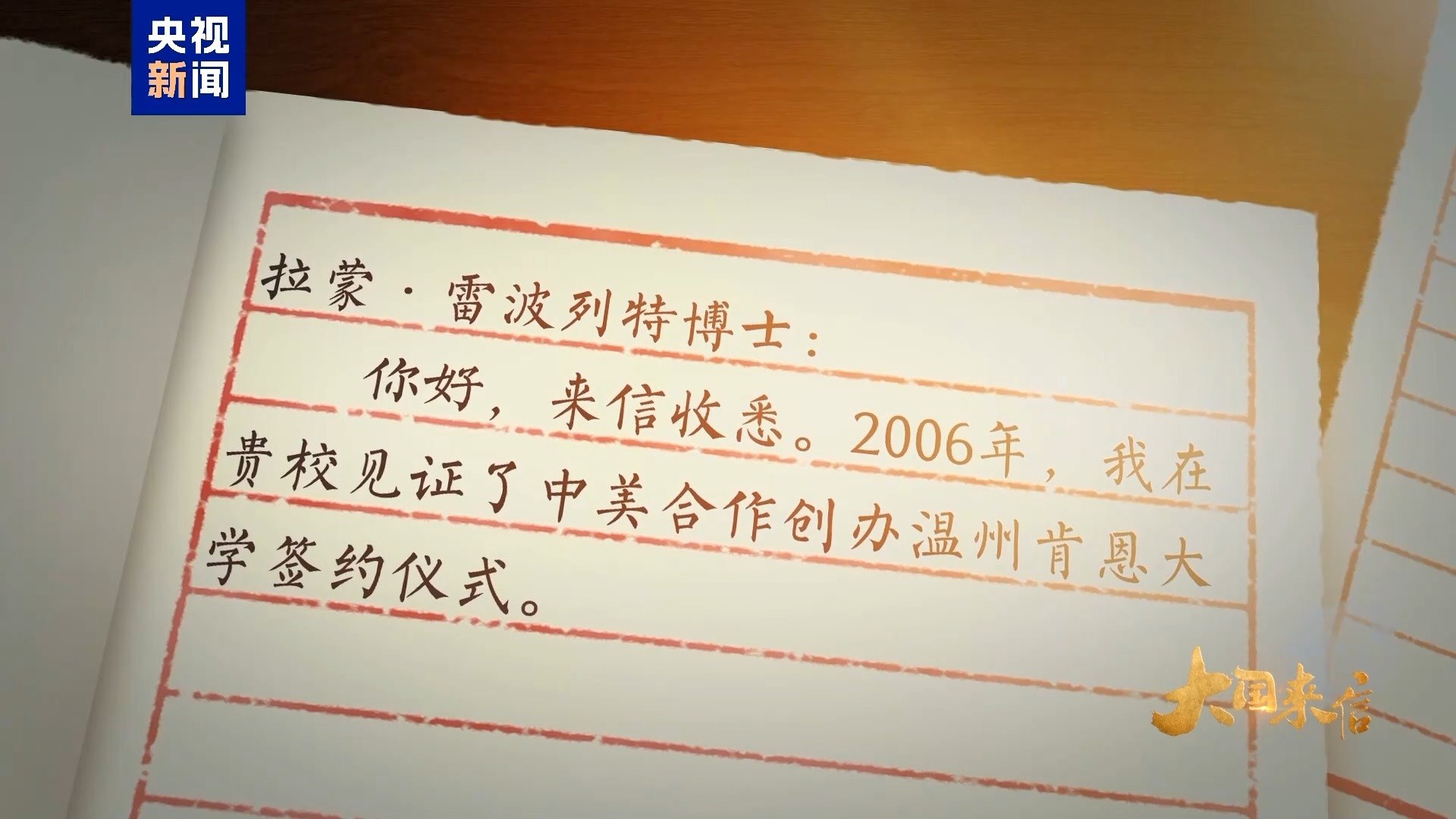 錦書云中來,尺牘傳深情。2006年,時任浙江省委書記習近平在美國肯恩大學見證了中美合作創(chuàng)辦溫州肯恩大學的簽約儀式。自2014年設立以來,溫州肯恩大學不僅培養(yǎng)了數(shù)千名中外學子,還推動了中美兩國青年一代的友好交流。去年6月,習主席復信美國肯恩大學校長拉蒙·雷波列特,鼓勵中美兩國高校加強交流合作,為促進中美友好貢獻力量。
